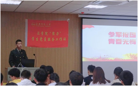 英国上市官网3652021级研究生赵佩文是来自北部战区的一名工程兵。他结合自身经历为大家介绍了我国的五大战区和七大军种,详细介绍了同学们最为关心的入伍政策和报考军校等问题,解答了同学们对于参军入伍的诸多疑问。