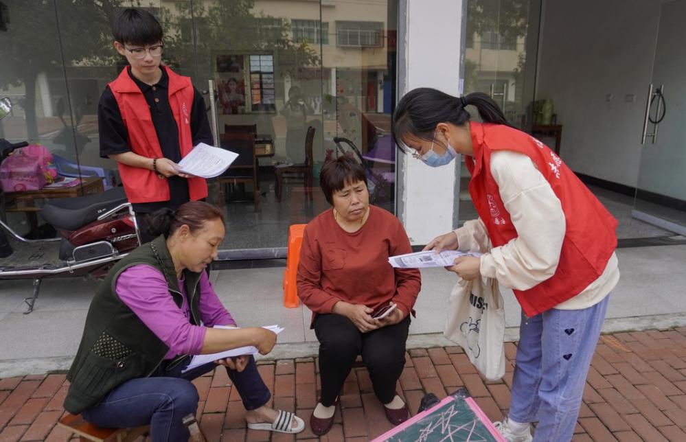 从东巷到西街,8位志愿者穿梭其间,挨家挨户为居民发放宣传单,科普民法知识。“了解到社区有老人独居,法律意识淡薄,我就想给他们普及一下有关诈骗方面的知识。”法学类专业2021(1)班丁子秋耐心地为社区内不识字的老人解读宣传单上的法律知识,并结合图片进行讲解。她提醒老人们要时刻保持警惕,不能轻易泄露个人信息。