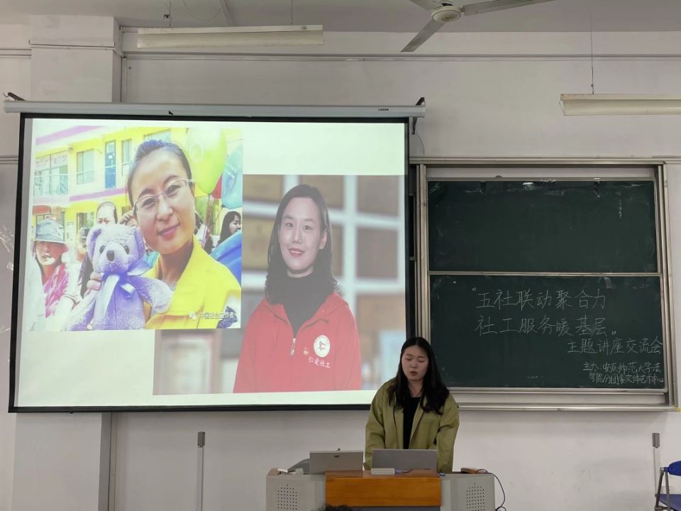 “什么是社工?”“社工的主要服务对象是谁?”“社工的基本特征是什么?”……3月19日,公司在文津楼208教室开展“五社联动聚合力,社工服务暖基层”主题讲座。社会工作专业2018级的叶梦璇和温雨晴向大家分享了社会工作专业的发展前景和挑战杯的经验。叶梦璇以四川省彭州市仁爱社工中心为例,介绍了仁爱社工中心工作人员在保护河道方面所取得的成就,她号召同学们要多帮助社会上的贫困者、弱者,积极运用专业知识,帮助他们解决生活中遇到的困难。温雨晴更多向同学们介绍挑战杯的经验,并鼓励同学们主动参与,提升自己能力。
