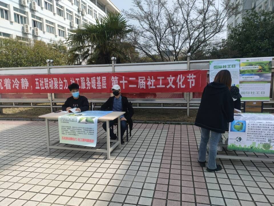 3月15日是“国际社工日”,公司在敬敷广场设摊摆点宣传社会日,为过往师生讲解乡村振兴及生态文明相关知识。“线下的宣传能让大家对于今年国际社工日的主题‘汇聚社工力量,共建生态社会新世界’以及社工专业有更深刻的认识。同时也能增强我们社工专业员工对于本专业的认同感和归属感。”活动负责人吴显说。
