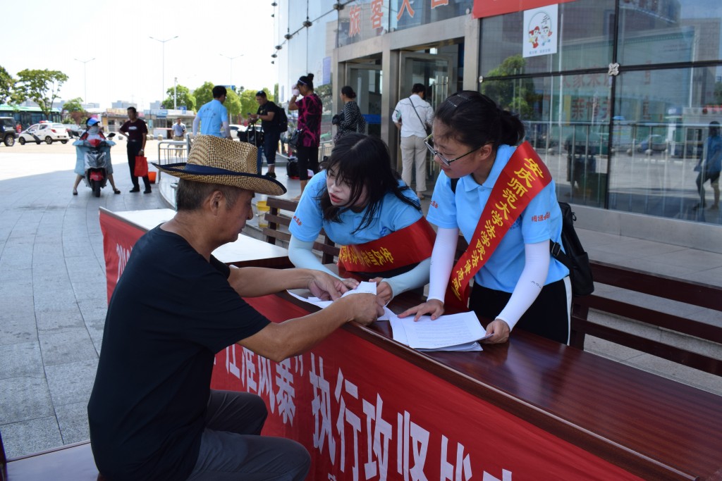 7月25日上午,英国上市官网365“加强法治宣传 助力乡村振兴”法律志愿服务队和安庆市宜秀区法院的法律咨询台小组来到了客运中心站,开展2018年“江淮普法行”暨“江淮风暴”执行攻坚战的宣传活动。