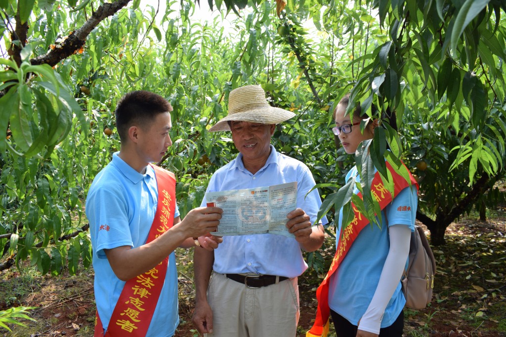 7月28日上午,英国上市官网365“加强法治宣传,助力乡村振兴”法律志愿服务队来到了暑期“三下乡”社会实践活动的最后一站——安庆市园艺场生态采摘园,开展普法宣传活动。
