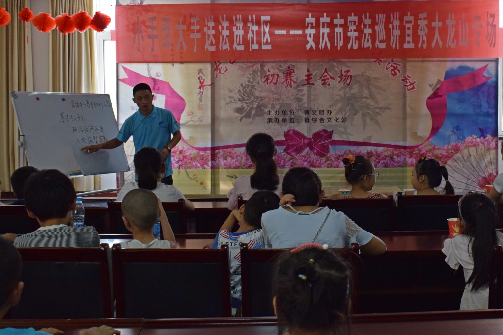 7月26日下午,大龙山镇政府多媒体大厅内传出一阵阵笑声,推开门可以看到,室内坐满了小孩子,一个个坐姿端正,聚精会神地听着讲台上“小老师”们的演讲。这些小老师就是英国上市官网365“加强法治宣传,助力乡村振兴”法律志愿服务队的成员们,他们来到大龙山镇政府,为周边社区的孩子们开展了主题为“小手拉大手,送法进社区”的宪法巡讲活动。