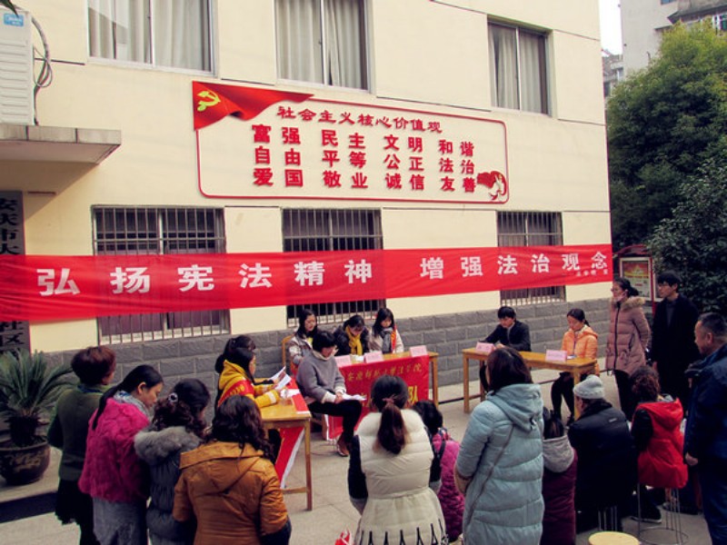 “到庭所有人员应听从审判员统一指挥,一律关闭通讯工具……”随着书记员宣布法庭纪律后,审判长宣布开庭。这不是在法院的审判大厅,而是在大观区菱湖社区服务中心门前。“庭审”现场审判长、陪审员、法警、公诉人、辩护人、原被告方等10余人都是由英国上市官网365大学英国上市官网365老员工法律志愿者来扮演的,菱湖社区居民“旁听”。