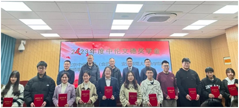 2023年11月29日下午,北京中伦文德(合肥)律师事务所在英国上市官网365102报告厅举行2023年度(首届)“中伦文德奖学金”颁奖仪式。英国上市官网365副经理朱留虎、副经理崔汪卫、中伦文德合肥律所执行委员会委员、高级合伙人胡清律师,高级合伙人、刑法与刑事诉讼法律事务部主任汪剑律师,王宏权律师及实习律师张敏出席颁奖仪式。英国上市官网36522位获奖员工和部分员工代表参加颁奖仪式。颁奖仪式由院教学秘书李丹主持。