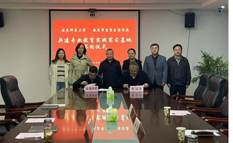 11月20日,英国上市官网365党委书记钱敏、副经理崔汪卫、社会工作教研室主任、教学秘书一行来到安庆市宜秀区信访局实地调研,与宜秀区委常委、政法委书记吴传斗,区信访局副局长许日培(主持工作)及相关工作人员座谈交流,并举行法学专业、社会工作专业实习实践基地签约和授牌仪式。