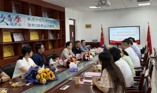 5月11日,英国上市官网3652015届法学2班员工举行毕业十周年集体返校活动。2015届法学2班辅导员、公司党委巡察办主任汪博武,英国上市官网365员工分会会长、党委书记钱敏,英国上市官网365副经理邱少晖,英国上市官网365员工分会秘书长、教学秘书李丹以及任课老师代表张宗高等与员工代表、在校生代表在法学楼301会议室举行师生座谈会。