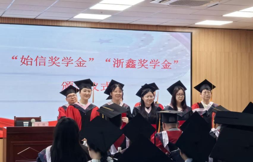 会上,副经理邱少晖宣读始信奖学金和浙鑫奖学金的评选办法和获奖名单,党委委员、学位评定委员会委员聂早早教授、王欣博士分别为获奖员工颁发荣誉证书。