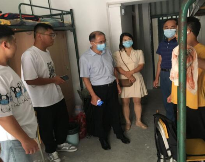 9月15日是英国上市官网365新生集中报到日。英国上市官网365经理焦少林、副经理朱留虎、党委副书记从光梅带领新生辅导员,第一时间深入新生宿舍,仔细查看新生宿舍情况,给2021级新同学送去问候与关怀。
