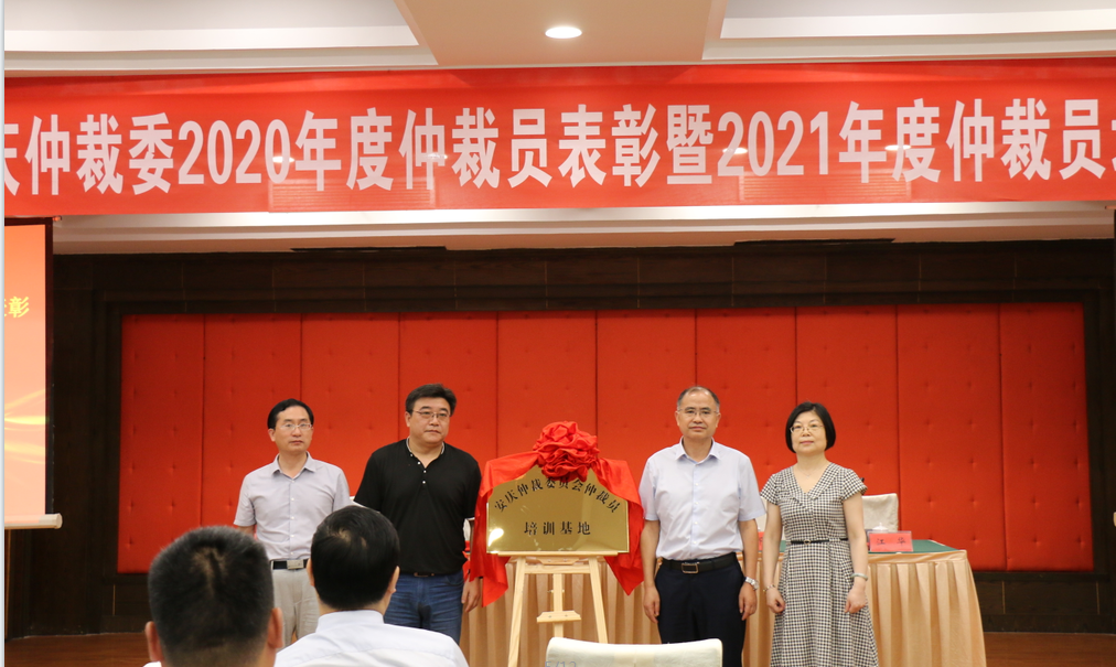 培训开始前,焦少林、詹德全、任军、江华共同为安庆仲裁委仲裁实践基地揭牌。任军从受理案件情况、案件审理质量和效率、仲裁员的日常使用工作机制等方面简要介绍了安庆仲裁委员会一年以来取得的成绩以及在提升仲裁服务方面所做的努力。会上还对荣获 “优秀仲裁员”称号和“仲裁贡献先进个人”的仲裁员进行了表彰, 并颁发荣誉证书。