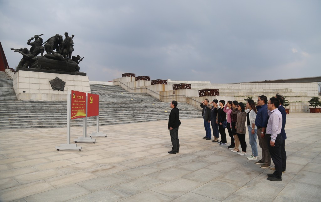 在苍松翠柏环抱中,五星纪念塔巍然屹立。面对鲜艳的中国共产党党旗,在詹德全书记的领誓下,全体党员高举右拳,重温入党誓词,铮铮誓言响彻陵园,表达了“不忘初心、牢记使命”的坚定政治信念。随后,全体党员来到了无名烈士墓前,三鞠躬致敬以表达无限的哀思和深深的敬意。