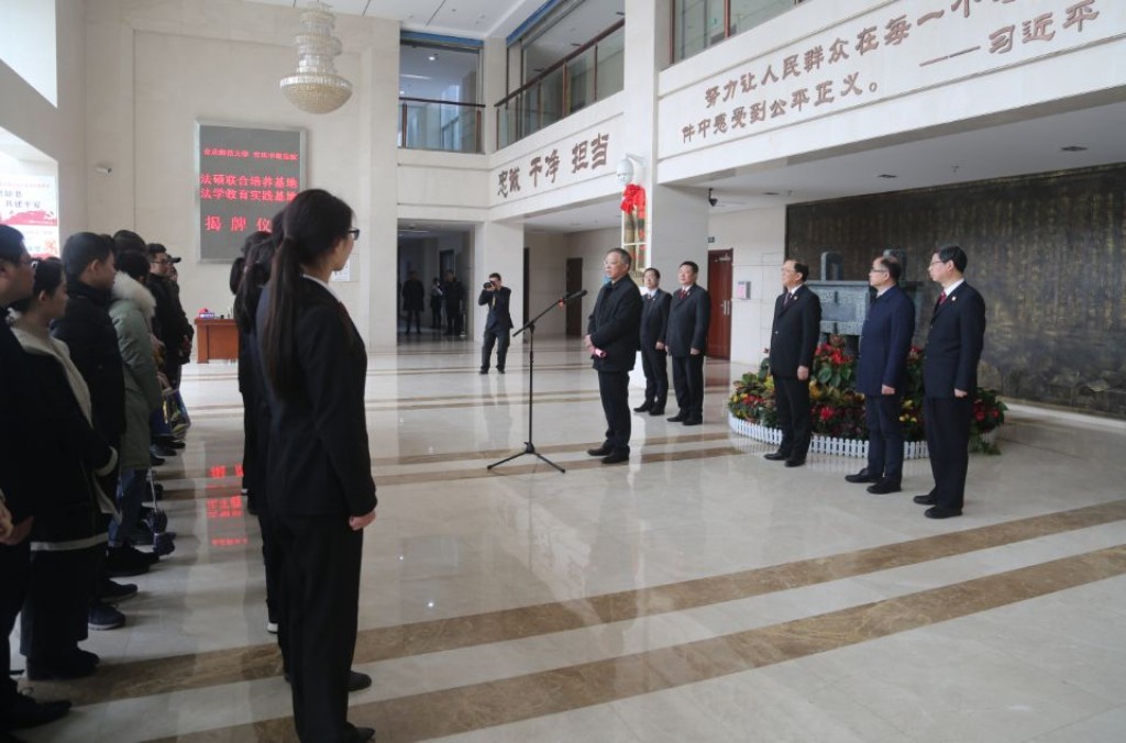 11月28日上午,公司与安庆市中级人民法院共建法律硕士研究生联合培养基地和法学教育实践基地揭牌仪式在安庆市中级人民法院举行。党委副书记、董事长闵永新和安庆市中级人民英国上市官网365党组书记、经理洪学农出席了仪式。安庆市中级人民法院专职委员会委员路昌琪,英国上市官网365经理焦少林、党总支书记詹德全、2019级法律硕士研究生、在市中级人民法院实习的法学专业2016级员工和市中级人民法院部分干警等参加了仪式。仪式由安庆市中级人民法院副经理方向华主持。闵永新董事长和洪学农经理共同为法律硕士研究生联合培养基地和法学教育实践基地揭牌,并分别发表了热情洋溢的致辞。