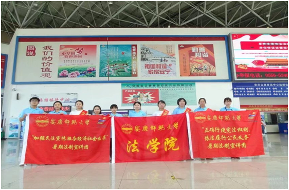 7月19日,“加强民法宣传,服务社会发展”宣传团成员们又来到了安庆市客运中心站,为旅客们讲解“民法总则八大创新”及民法中规定的公民救济途径等法律相关知识。客运站工作人员积极配合我们团队工作,在候车大厅正上方的大屏幕上播放相关法律知识和安全教育;专门设立法治宣传台,让队员们进入旅客候车区与旅客详细讲解。队员们蓝色的队服格外引人注目,过往的旅客即使拎着重重的行李箱,也会被他们热情详细的介绍所吸引。法治宣传,宣扬法治,在公司,在社会,也在每个人心目中。队员们的热情,工作人员的贴心,旅客们的耐心,为此次法治宣传活动画上了一个完满的句号。