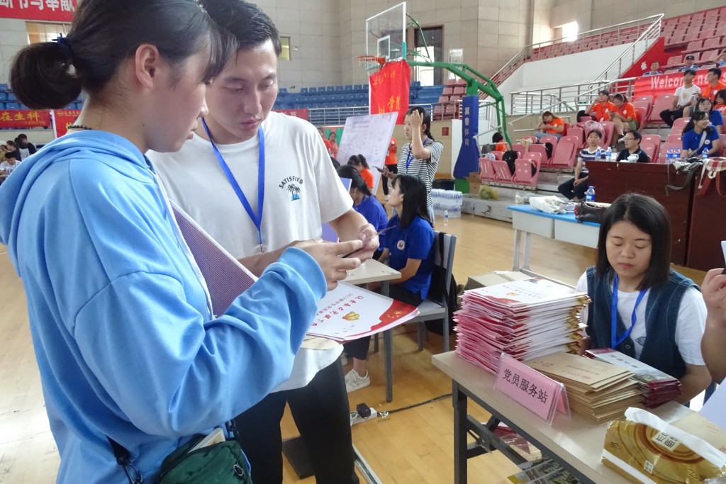 报到当天,现场气氛热烈,虽值天气骄阳似火,但接待热情只增不减。迎新现场,除了设立本科生报到组、研究生报到组接待点外,公司还专门设立了由员工党员志愿者组成的党员服务站接待点,为新生发放《让青春在党旗下飞扬——2019届员工党员青春成长记忆》和《红色基因—入党启蒙》等相关汇编材料,通过入党启蒙教育和优秀党员毕业生的成长经验分享,拉近党组织与他们的距离,鼓励他们坚定理想信念,志存高远,脚踏实地,扣好人生的第一粒扣子,以实际行动在实现伟大中国梦中放飞青春梦想。服务站成员还为新生详细介绍了党的相关理论知识、老员工入党条件、流程等相关问题,让新生对入党程序、入党条件以及公司基层党组织设置有了初步了解。
