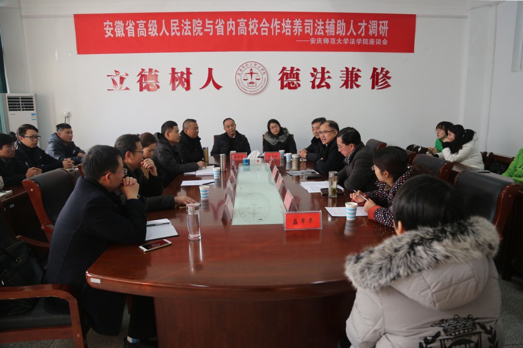 近日,安徽省高级人民法院法官管理处副处长虞雅莉一行5人到公司开展关于与省内高校合作培养司法辅助人才的相关调研,公司党政领导高度重视,于12月12日下午召开了专题调研座谈会。会议由经理焦少林主持,省高院调研组成员、安庆市中级人民法院相关人员、公司领导班子、部分教职工以及员工参加了会议。