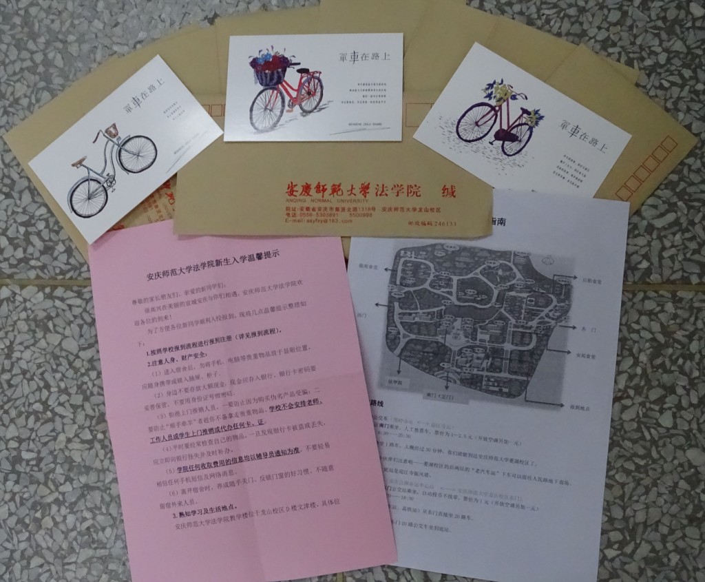 “为了新生们在开学当天能收到这个信封,我们在很早就开始策划,明信片是定制的,指南、生活指引等也花了大量时间去整理。” 报到点负责人笑着说,希望学弟学妹们能感受到他们的一份心意。