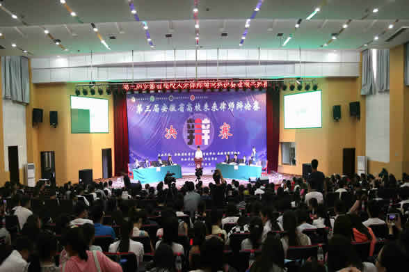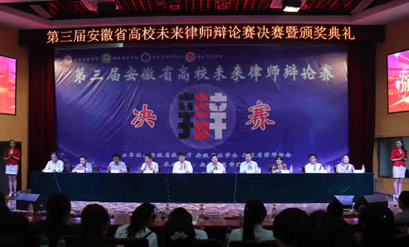 此次大赛由安徽省教育厅、安徽省法学会、安徽省律师协会主办,安庆师范公司承办。十八支高校代表队在经过三天32场比赛的激烈角逐之后,来自安徽师范大学、安徽财经大学、阜阳师范公司和安庆师范公司四支实力超群的辩论队伍脱颖而出,最终晋级决赛。决赛分一辩立论、二辩驳辩、三辩盘问、三辩盘问小结、自由辩论及总结陈词六个环节。担任此次辩论赛决赛的评委由18所参赛高校推荐的7位法学专业教授、副教授组成。