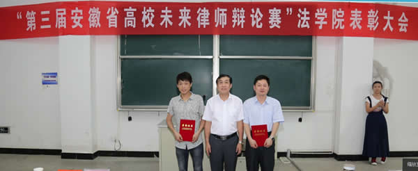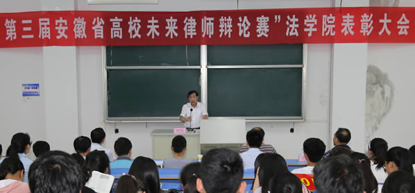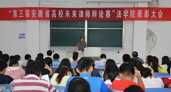 6月10日下午,第三届安徽省高校未来律师辩论赛英国上市官网365表彰大会于文溯楼108教室隆重举行。公司党政领导焦少林、詹德全、朱留虎及全体教职员工参加了会议。参会的还有2012级、2013级、2014级法学专业员工,2012级农村区域发展班党员和班干部等。大会由公司党政办主任汪博武主持。会议还特别邀请到联系英国上市官网365的校领导刘友忠副董事长出席。