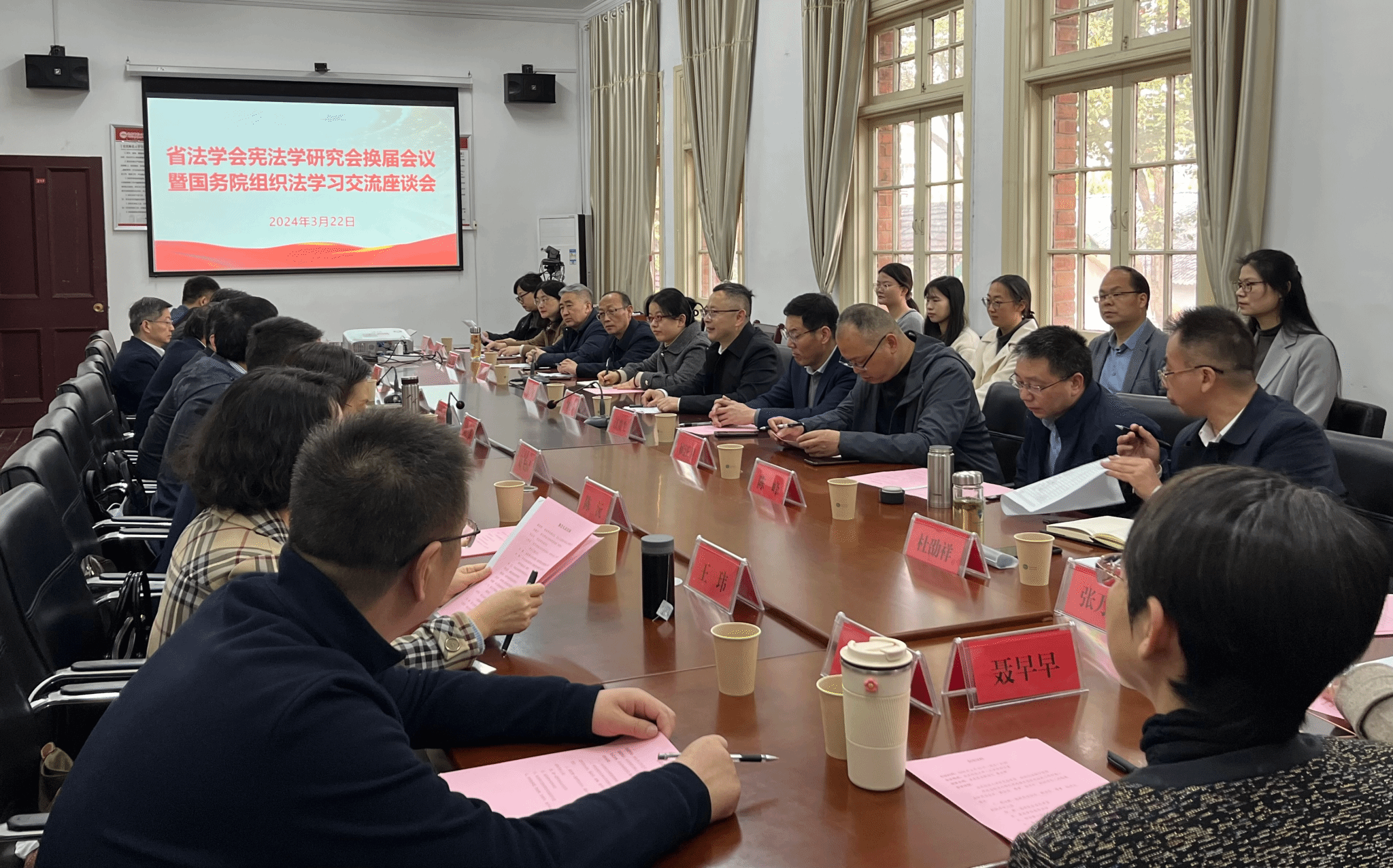 近日,安徽省法学会宪法学研究会换届大会暨国务院组织法学习交流座谈会在英国上市官网365菱湖校区红楼大会议室召开。安徽省法学会副会长、省人大监察和司法工委副主任潘法律,英国上市官网365党委常委、副董事长徐晓宁,安徽省法学会秘书长余永东出席会议。来自省人大、省高院、省人民检察院、部分高校等代表共计30余人参加了会议。会议由潘法律主持。