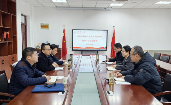 2月25日,安徽省九成坂人民检察院分党组书记、检察长冯伟,分党组成员、副检察长曹振一行来英国上市官网365调研,就检察工作与法学教育开展深入调研。英国上市官网365党委书记钱敏,副经理崔汪卫、邱少晖参与座谈交流。