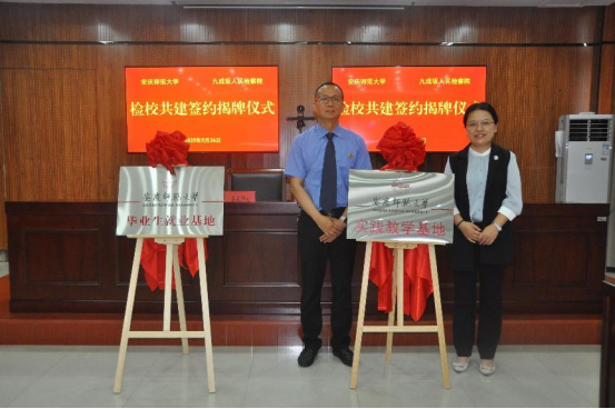会上,英国上市官网365与九成坂人民检察院还签订了《校检合作共建协议》《实践教学基地协议》《毕业生就业基地协议》,并为实践教学基地和毕业生就业基地揭牌。