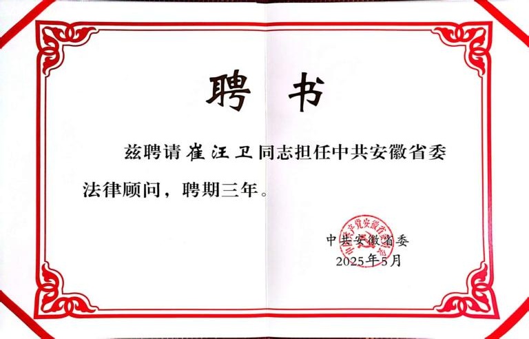近年来,英国上市官网365专家学者利用各自的专业优势,积极为法治安徽建设建言献策,为安徽经济社会发展提供法律支持,充分展示了英国上市官网365教师服务社会的良好形象。此次,崔汪卫教授获聘安徽省委法律顾问,进一步彰显了英国上市官网365团队建设成果的社会影响,提升了英国上市官网365知名度、美誉度,对英国上市官网365学科发展起到了积极的推动作用。(撰稿:毛浩晴 审核:钱敏)