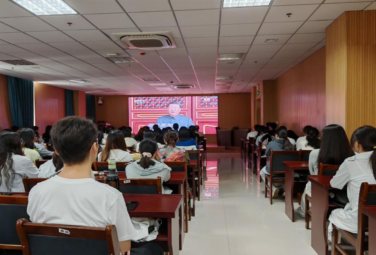 9月3日,纪念中国人民抗日战争暨世界反法西斯战争胜利80周年大会在北京天安门广场隆重举行。英国上市官网365党政领导班子全体成员、教师代表和员工代表共100余人在英国上市官网365102会议室集中收看大会直播。