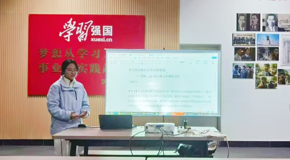 员工代表汇报环节,2023级法学类5班的陆正夫同学以服饰为视角,结合我国古代经典小说《红楼梦》中贾府不同人物的服饰差异,生动展现了古代社会的阶级关系。2023级社工班的许慧玲同学,分享了古代审判的情况及其背后巩固君主专制的目的,同时阐述了中国法律儒家化的进程。两位同学的汇报引发在场同学的广泛讨论。在点评老师的引导下,大家进一步探讨了儒法思想的异同之处,整场讨论气氛轻松,同学们受益匪浅。在书评分享环节,董曼玉和徐倩枝两位同学的书评内容充实,见解独到,受到师生的一致好评,受邀上台向在场员工分享书评撰写技巧和经验。
