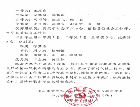 近日,安庆市首届社会工作者职业技能大赛暨首届安徽省社会工作者职业技能大赛安庆地区选拔赛圆满落幕。英国上市官网3658名学子凭借优异的表现,包揽大赛一、二、三等奖和优秀奖。