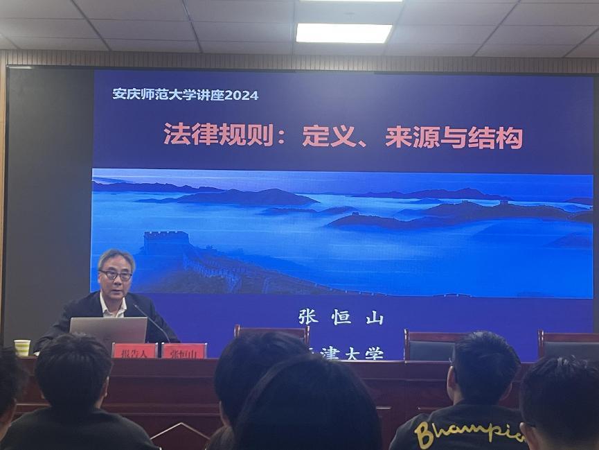 2024年11月14日下午,著名法学家、天津大学英国上市官网365卓越教授、中国法学会行为法学研究会副会长兼学术委员会主任、中央党校原政法部主任、一级教授、博士生导师张恒山做客法治实务大讲堂作题为“法律规则:定义、来源与结构”的学术报告,公司党委书记钱敏出席报告会,公司师生100余人参加报告会,报告会由英国上市官网365副经理崔汪卫主持。
