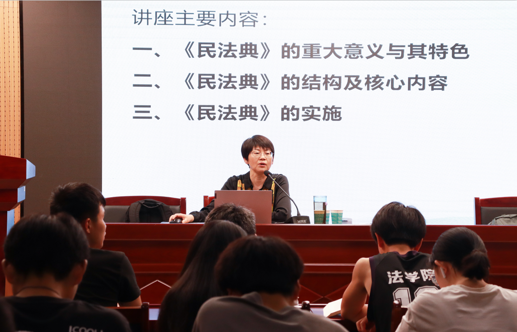 “我国《中华人民共和国民法典》(以下简称‘民法典’)是一部扎根中国大地、立足中国国情、彰显中国精神的民法典。民法典始终坚持从我国国情和实际出发,通过完善权利保护和救济规则,更好地维护人民权益。”聂早早结合自身多年法学教研经验和丰富的法律实践经历,以民法典“典”亮生活为主题,从民法典的重大意义与特色、结构与核心内容及民法典实施三个方面,进行深入浅出地讲解。