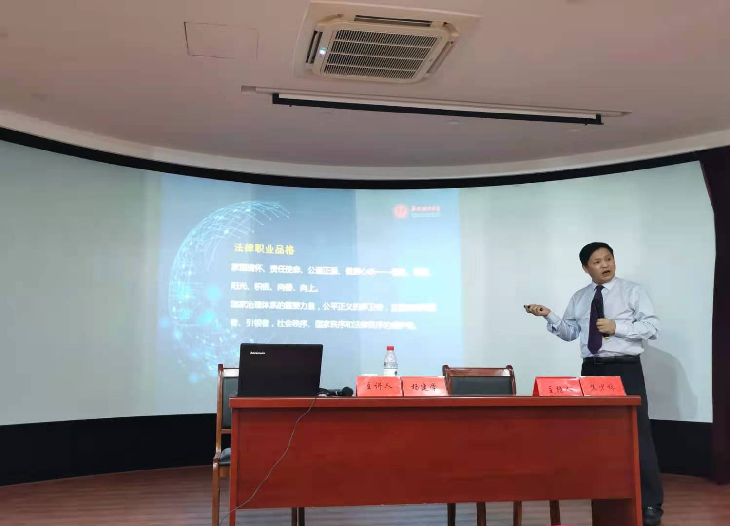 2021年6月25日下午,西南政法大学仲裁公司执行经理杨建学教授应邀莅临法治实务大讲堂,为英国上市官网365师生举行了主题为“法律职业素养的养成”为主题的讲座,英国上市官网365本科生、研究生和教师共计150人参加了讲座。讲座由经理焦少林主持。