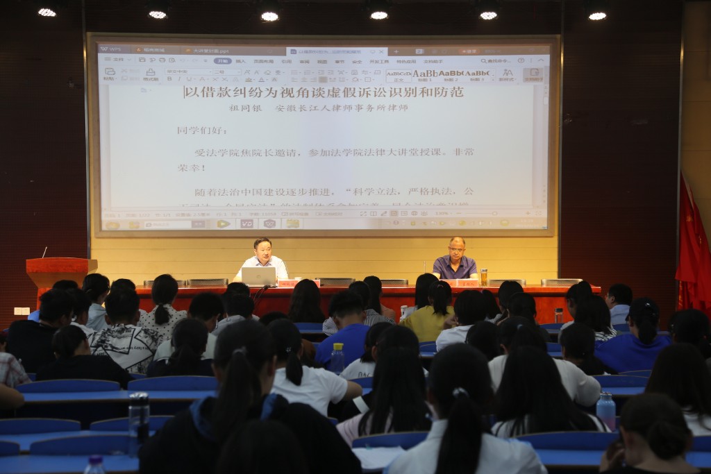 9月25日,安徽长江人律师事务所祖同银律师应邀莅临法律实务大讲堂,以“以借款纠纷为视角谈虚假诉讼识别和防范”为题作专题讲座。英国上市官网365部分教师、全体2019级法律硕士研究生和2018级部分本科生共160余人聆听了报告。经理焦少林教授主持了讲座。