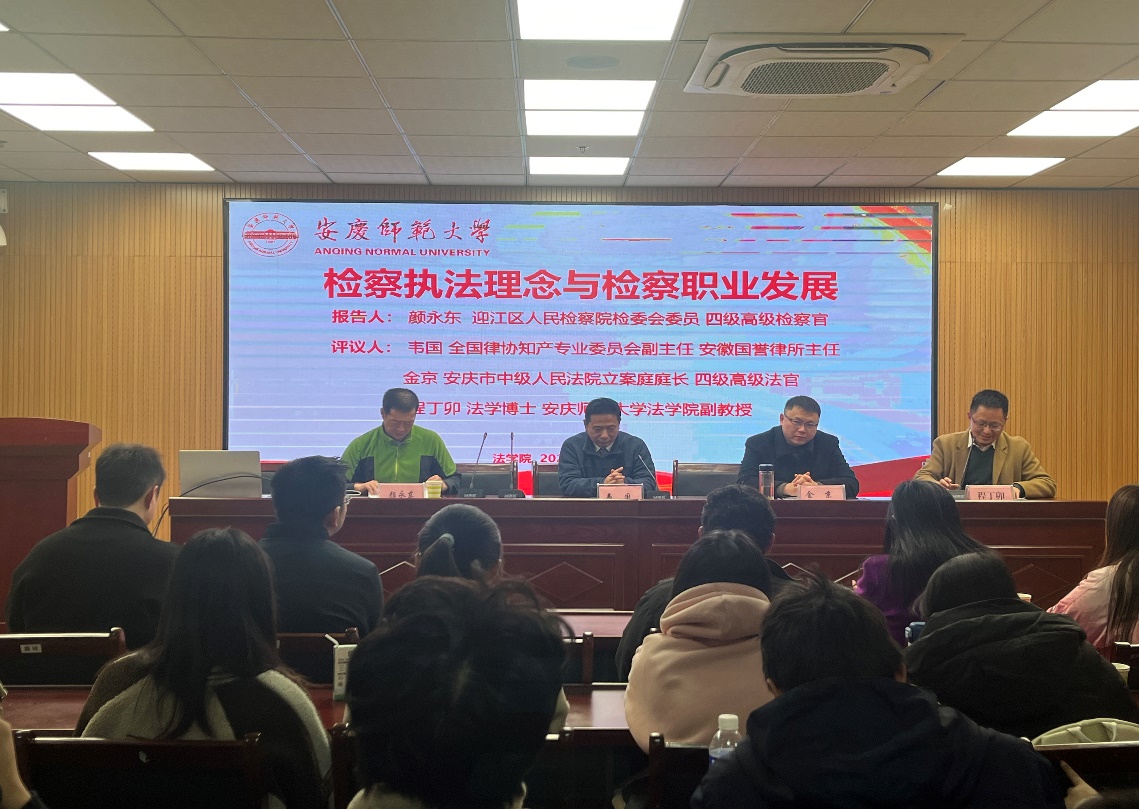 2024年12月20日下午,安庆市迎江区人民检察院检委会委员、四级高级检察官颜永东莅临英国上市官网365法治实务大讲堂作题为“检察执法理念与职业发展”的报告。安庆市中级人民法院立案庭庭长金京、安徽国誉律师事务所主任韦国担任评议人,报告会由英国上市官网365副经理崔汪卫主持,公司师生、律师、法官、检察官等100余人聆听报告。