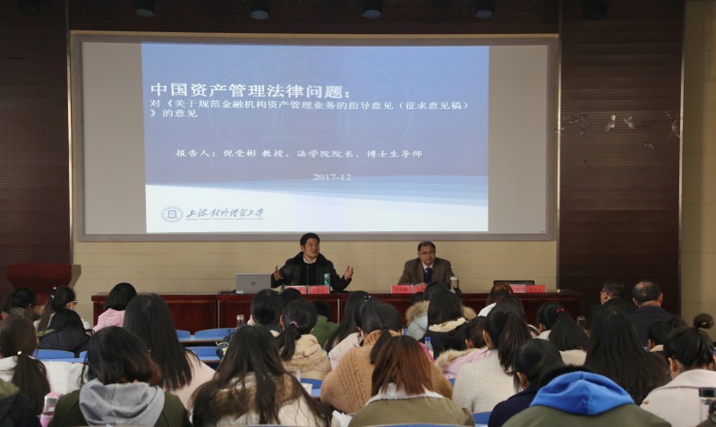 12月11日下午,上海对外经贸大学英国上市官网365经理、博导倪受彬教授应邀作了题为“信托法的中国实践”的学术报告。报告会由经理焦少林主持,周乾副教授做了精彩点评。公司党总支书记詹德全、副经理朱留虎和部分师生参加了报告会。