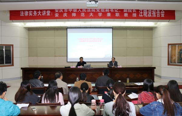 10月26日下午,安庆市中级人民英国上市官网365党组副书记、副经理,公司兼职教授汪晓波同志莅临公司法律实务大讲堂,作了一场题为“从四起刑事案件证据运用分析谈我国刑事证据制度变革”的精彩报告。英国上市官网365部分教师和法学专业2014级、2015级100多人参加了报告会,会议由英国上市官网365经理焦少林教授主持。