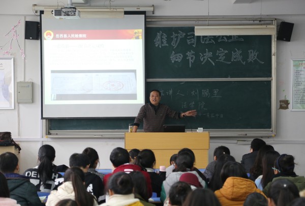 11月30日岳西县人民检察公司党组人员、反贪局长,公司英国上市官网365经理助理、副教授刘鹏里应邀莅临法律实务大讲堂,作了一场以“维护司法公正 细节决定成败”为主题讲座,公司2016级法学专业部分员工参加。