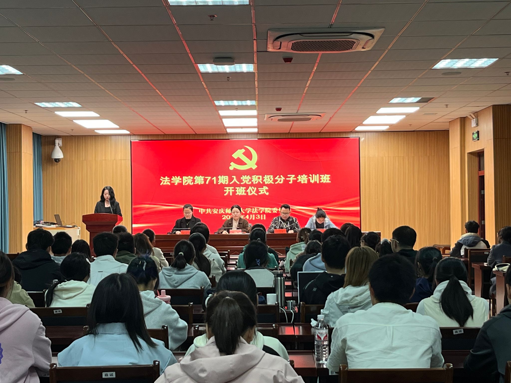 4月3日,公司在法学楼法治实务大讲堂举办第71期入党积极分子培训班开班仪式。公司党委书记钱敏、员工党支部书记、第71期全体入党积极分子参加开班仪式。